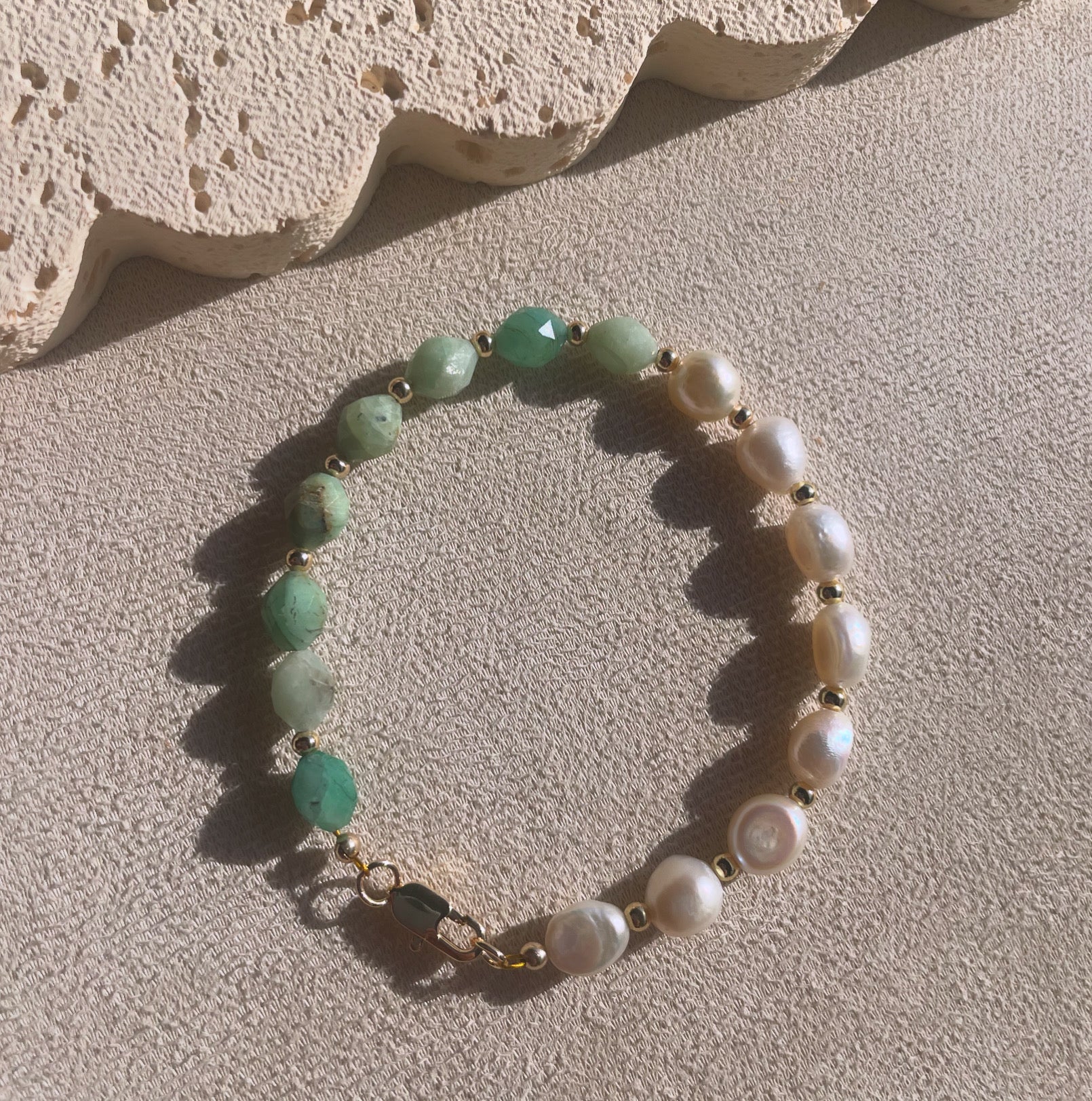 ✨Add a touch of elegance with the timeless beauty of pearls and the vibrant glow of chrysoprase, perfectly complemented by delicate gold filled spacer beads. A perfect balance of luxury and nature for any occasion. ✨