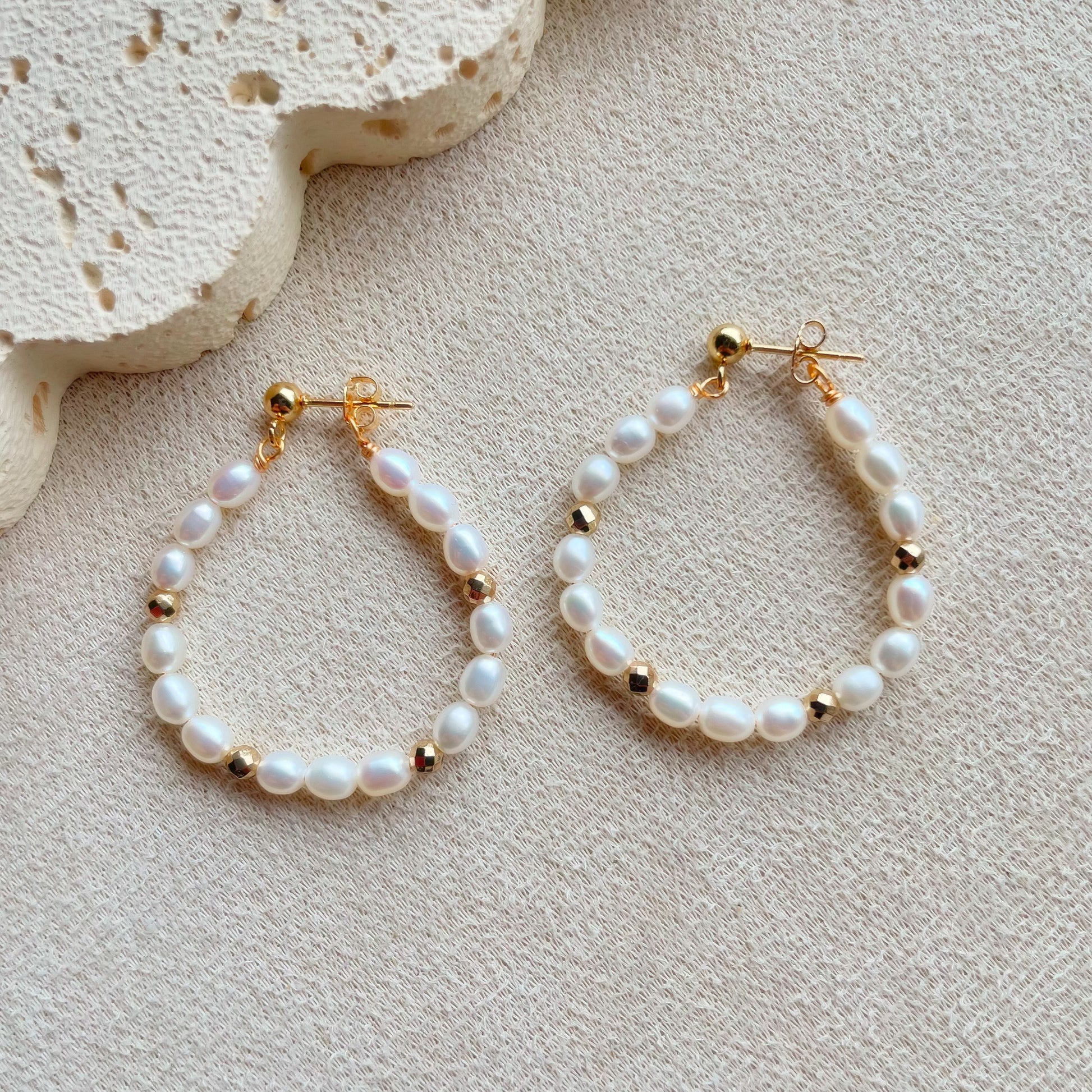 ✨ Timeless elegance in every hoop ✨ Rice freshwater pearls paired with faceted gold hematite beads for the perfect balance of luxe and shine. These beauties elevate any look!